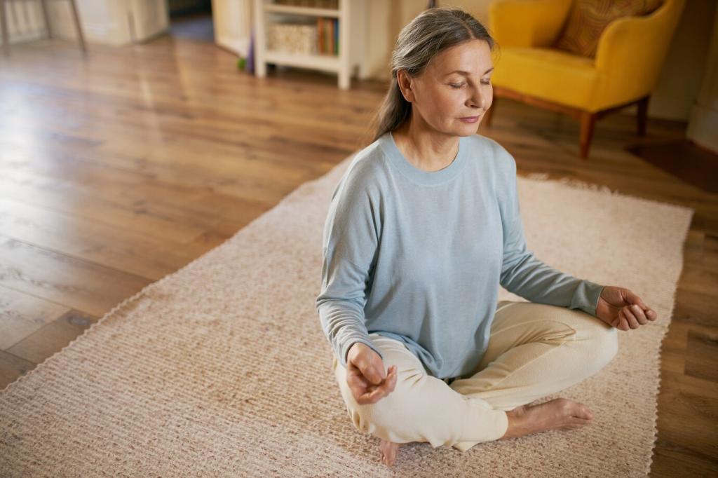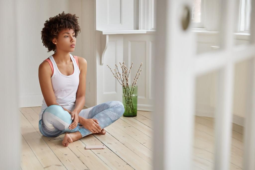 Close your eyes and sweep awareness from crown to toes. Notice warmth, tightness, or pulsing. On each exhale, invite heaviness to drop through the floor, leaving muscles soft and receptive.